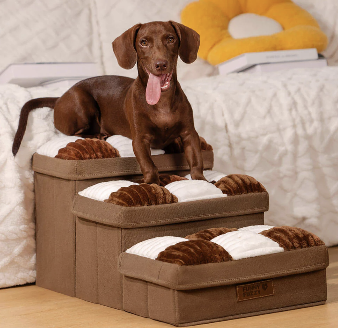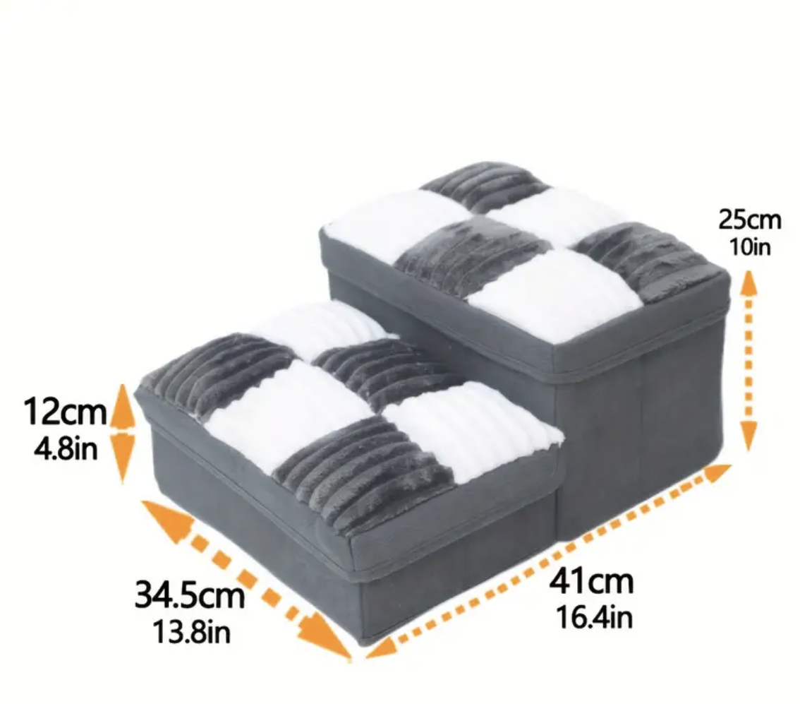 Give your furry friend a boost — in both height and style! Our Handcrafted Dog Stairs are more than just a cute accessory. Designed with a stylish chessboard plaid pattern and built-in hidden storage, these stairs are the perfect combo of comfort, utility, and space-saving genius. Whether your pup needs help reaching the couch or bed, or you need a little extra storage, this multifunctional piece does it all.