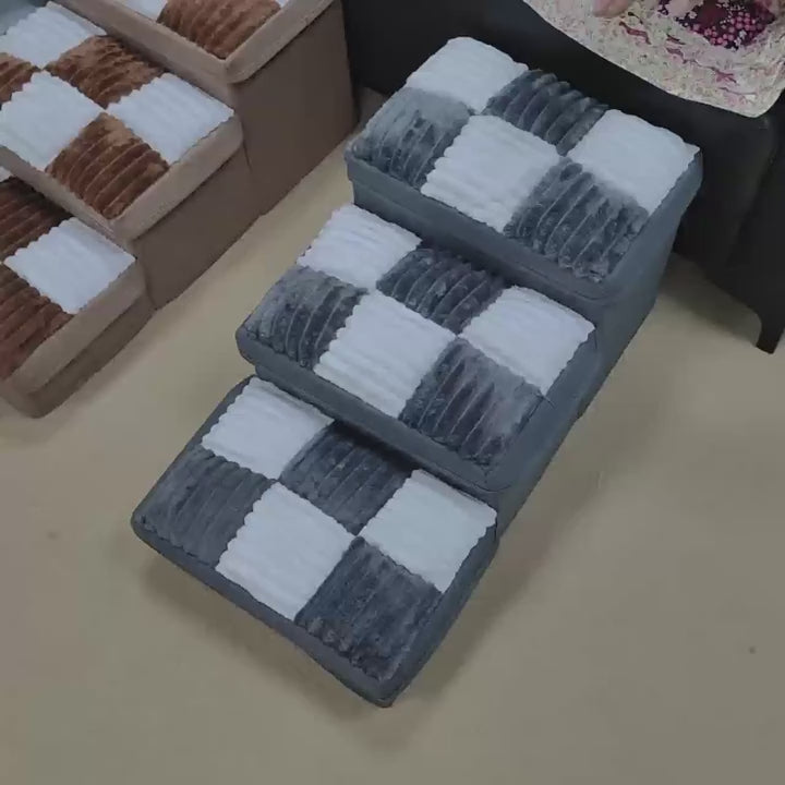 Chessboard Plaid Handcrafted Dog Stairs – Foldable, Functional & Fabulous